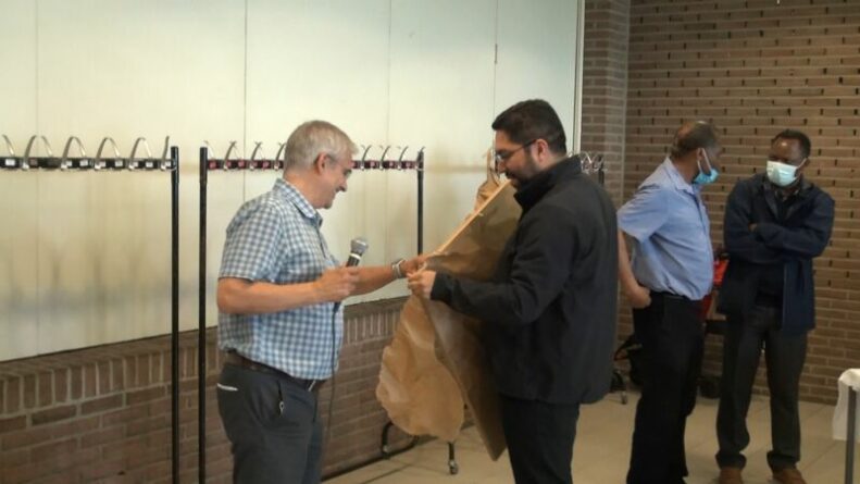 Puis ce fut au tour d’Alejandro de prendre la parole … et de recevoir les cadeaux que la communauté lui avait préparés …