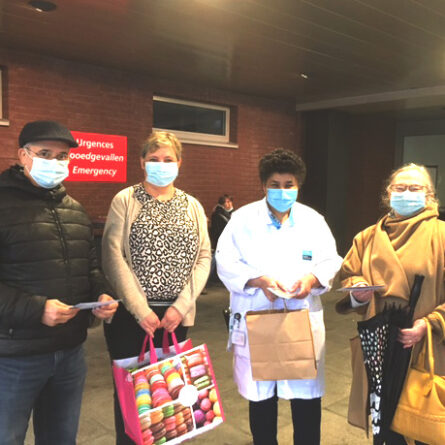Ce lundi, avec Marie-Thérèse Simon la responsable de notre pastorale de la santé, nous avons initié une action de remerciement et de reconnaissance au personnel hospitalier de l’unité COVID ainsi que des autres services de l’hôpital Sainte-Élisabeth à Uccle, et au service de l’aumônerie. Il nous a semblé, une fois de plus, important de leur marquer notre soutien en tant que communauté priante et notre reconnaissance pour leur dévouement auprès de ceux qui souffrent dans ce temps de crise sanitaire.