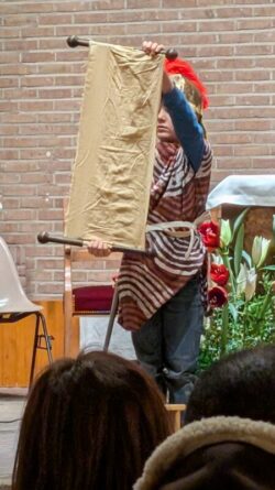 Puis il accompagneront par leurs gestes la lecture de la Bonne Nouvelle par le père Joseph.