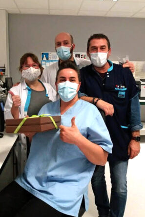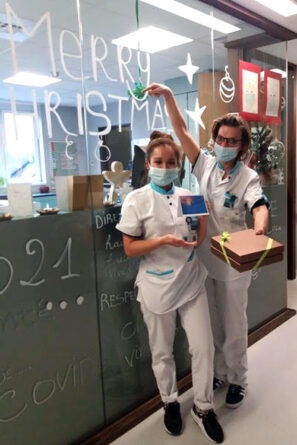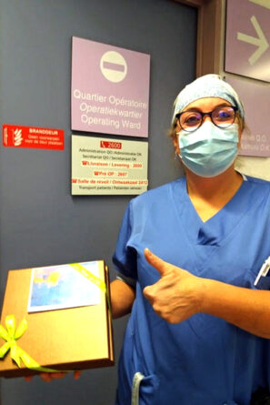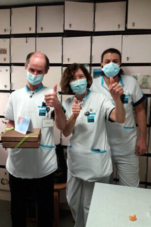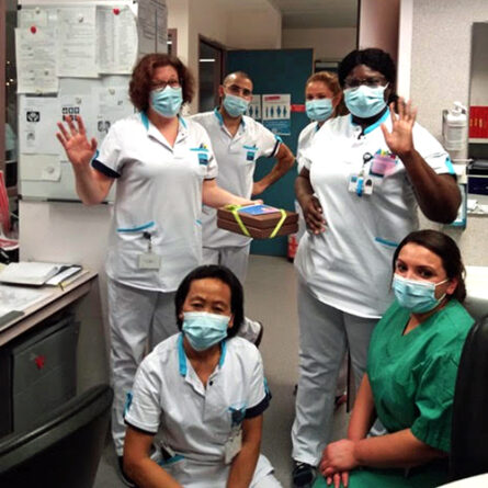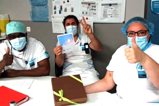 La semaine dernière, dans notre newsletter, nous faisions écho au geste que Jean et Marie-Thérèse avaient effectué en notre nom auprès des soignants de l’hôpital Sainte-Elisabeth. Cet article (pour le relire cliquer ici) à peine paru, nous recevions le mail et les photos ci-dessous qui nous ont beaucoup émus. Comment réagir quand ceux à qui nous devons notre plus profonde reconnaissance nous renvoient une bouffée d’affection et de gentillesse. Un seul mot : LA GRATITUDE !