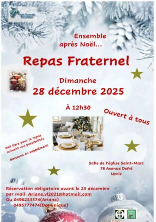 … et il y a encore de la place pour le Repas Fraternel qui aura lieu à Saint-Marc le 28 décembre, fête de la Sainte Famille, après la messe de 11h.