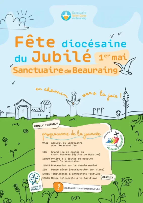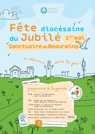 Malgré le décès récent du pape François, ce 1er mai fut une très belle journée d’Espérance et de partage. Nous étions 17 de notre Unité Pastorale, de 8 à 78 ans, à nous mettre en route vers Beauraing à l’invitation de l’évêque de Namur. Le soleil brillait dans le ciel et dans les cœurs. Ce furent des moments de grande ferveur, de louange et d’approfondissement en cœurs à cœurs les uns avec les autres et avec Notre Dame en ce premier jour du mois qui lui est traditionnellement consacré.
