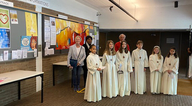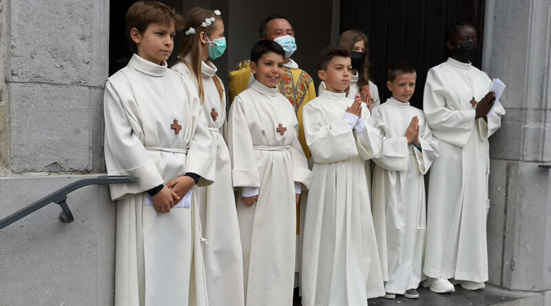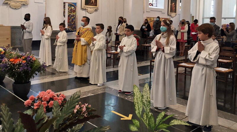 A nouveau il a fallu faire preuve d’imagination pour respecter les règles sanitaires du moment. Ainsi pour rester dans la limitation du nombre de personnes admises dans les églises, nos jeunes se sont répartis sur les sites de nos trois églises. Lors de ces trois samedis, aux mêmes heures, les sacrements d’initiation ont été conférés simultanément par l’abbé Benoit Hauzeur (notre doyen), l’abbé Alejandro et le Père Tam.