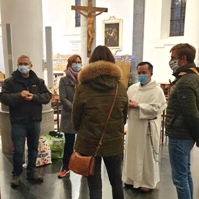 C’est dans notre église Saint-Pierre, au pied de la crèche , que nous nous sommes retrouvés : des représentants de notre pastorale de la santé, de notre service de l’Entraide et les représentants de l’Unité scout. Le Père Tam a prononcé une bénédiction sur cette action au cours d’un moment de recueillement. Ce  fut un beau et bon moment de rencontre et de communion.