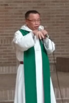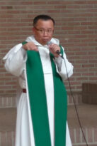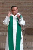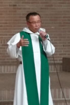 L’homélie très animée du père Tam. (Quelqu’un derrière moi a chuchoté « le père Toto ». Je ne dénoncerais pas qui.)