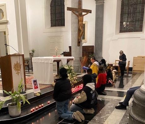 Ce samedi nous avons retrouvé nos jeunes des groupes Alliance et Fraternité à l’église St-Pierre pour la messe de 17h00 suivie d’un moment d’initiation à l’Adoration. Ils étaient une vingtaine. Tous ont participé d’une manière ou d’une autre : lectures, prières, chants, temps de silence… nous étions tout simplement devant Jésus, habités par sa présence.