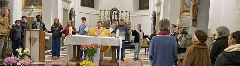 De retour à l’église Saint-Pierre, nous avons pu admirer l’exposition de photographies de Jacques Bihin avant de participer à la messe, célébrée par le père Tam, pendant laquelle nombre de nos jeunes se sont engagés en proclamant la Parole et en confiant pour l’assemblée les intentions de la prière universelle.
