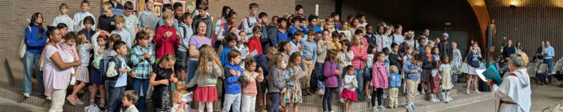 Au moment de prendre le départ des parcours scolaires qui attendent nos enfants au cours des dix prochains mois, nous avons tout arrêté pour un instant de recueillement, une prière pour les confier à Dieu et une bénédiction pour les couvrir de notre amour. C’est ce que nous nommons du terme familier de “Bénédiction de cartables”. Un moment important de la messe de rentrée.