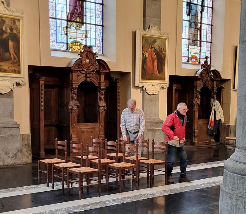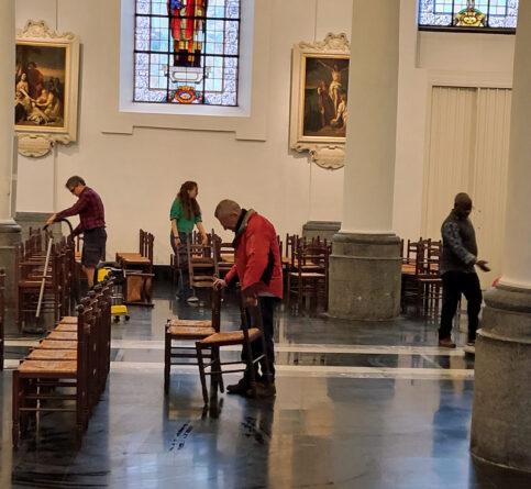 Epoussetant, grattant les coulées de bougies, balayant, aspirant, nettoyant, déplaçant chaises et meubles, cette dizaine de paroissiens, parfois très jeunes, ont plié l’opération en 2 heures, sous le regard ébahi de Pamphile …