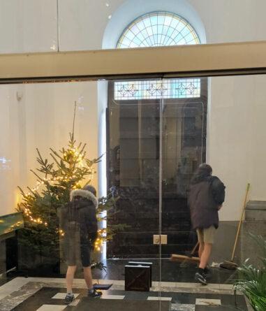 Ce lundi 23 décembre, quelques paroissiens, sous la direction de Pamphile, se sont retroussés les manches pour faire briller les sols de notre église Saint-Pierre.