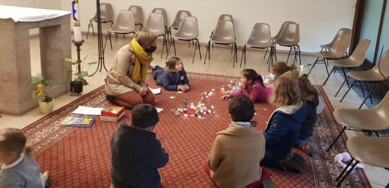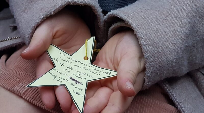 Les enfants ont écrit sur une étoile de papier un petit progrès pour plaire à Dieu, à accrocher dans le sapin jusqu’à Noel !